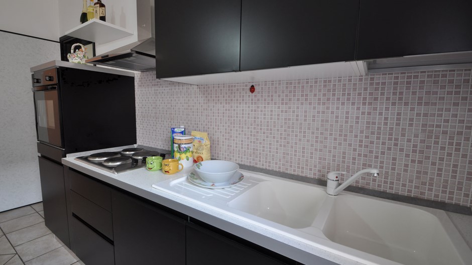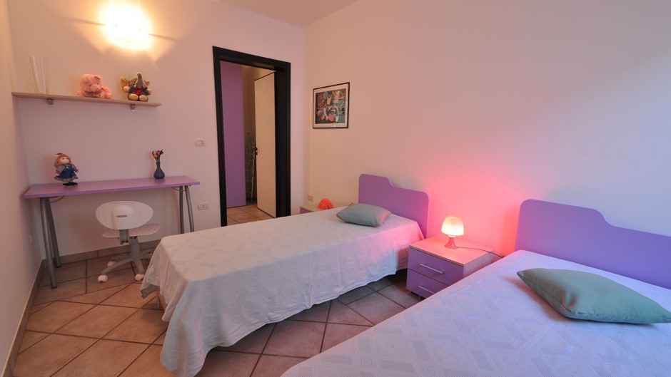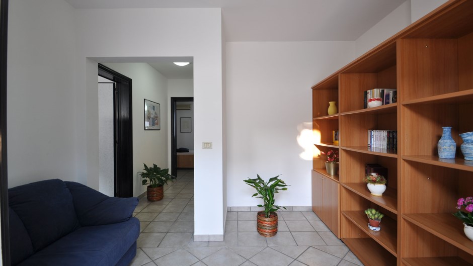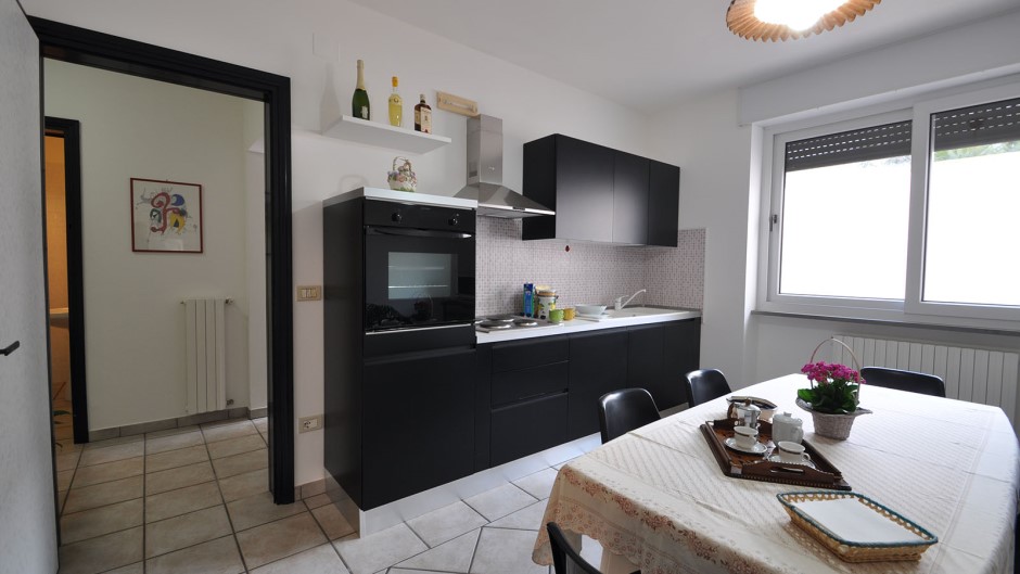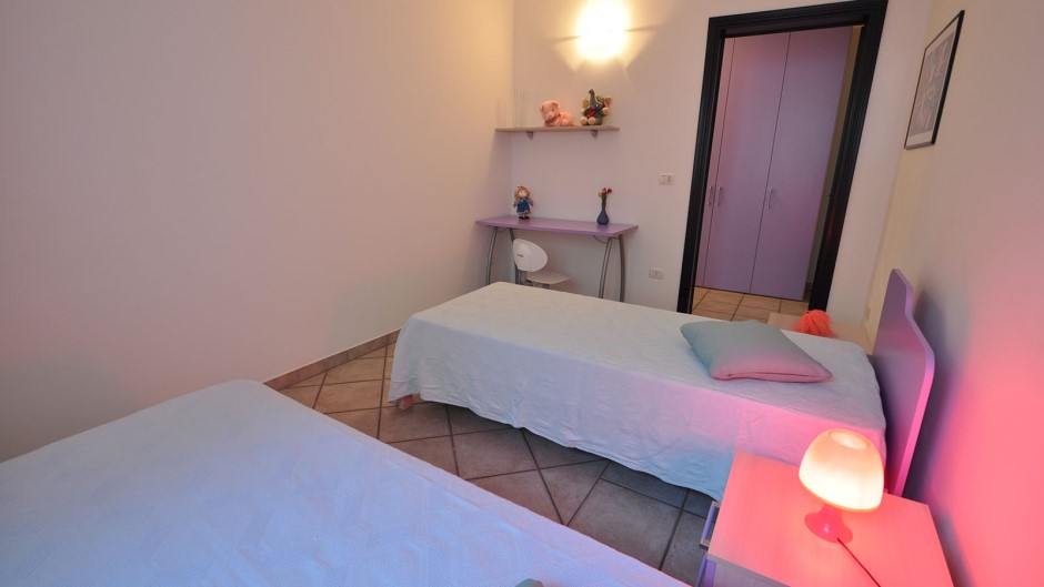 L'arredamento è semplice ma curato, con una luminosa ed ampia sala da pranzo con angolo cottura a vista, una camera da letto matrimoniale climatizzata, una camera doppia e un bagno con doccia.