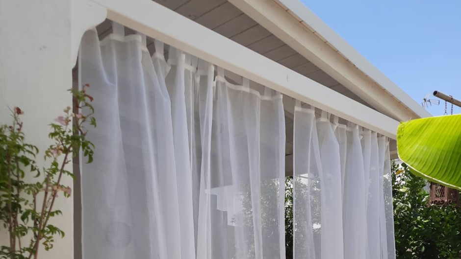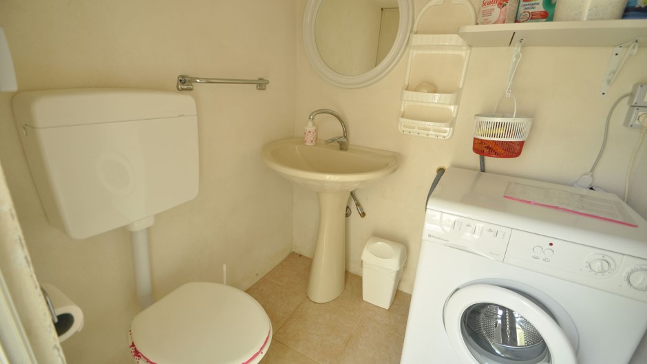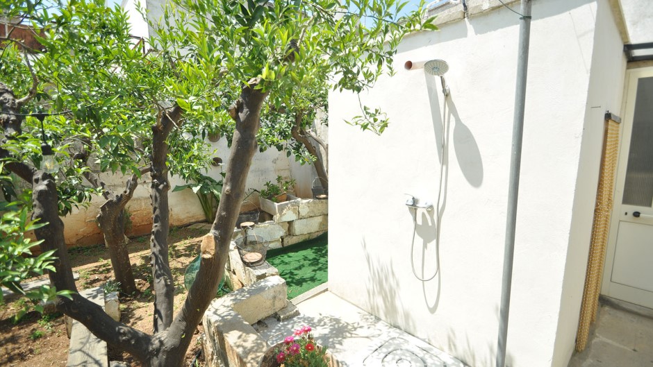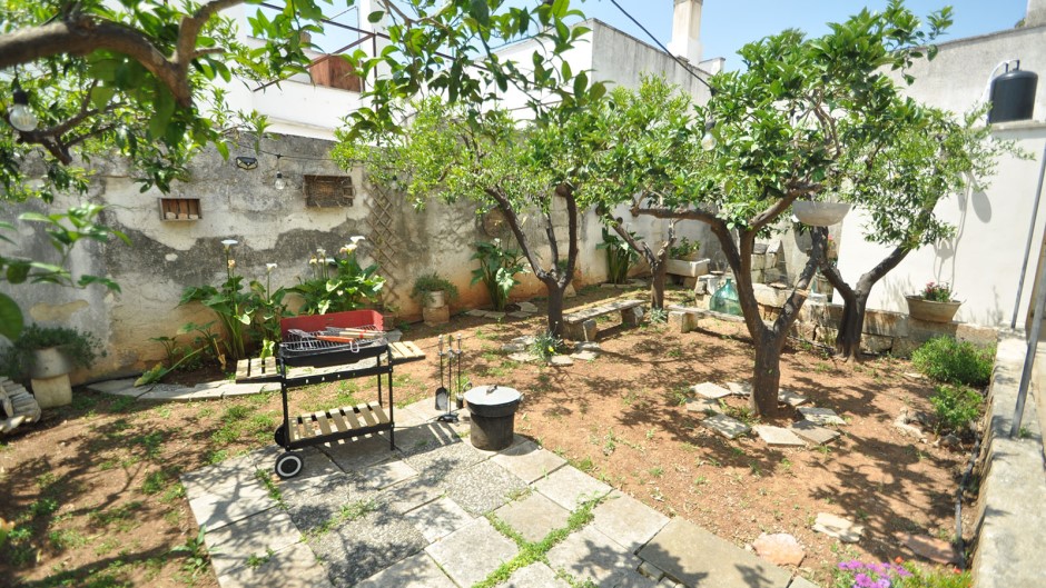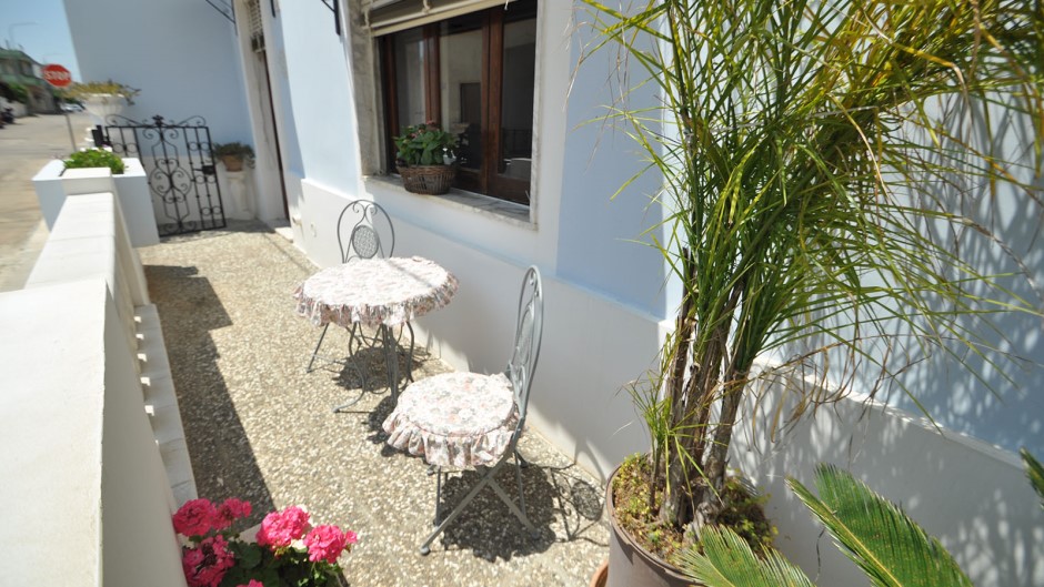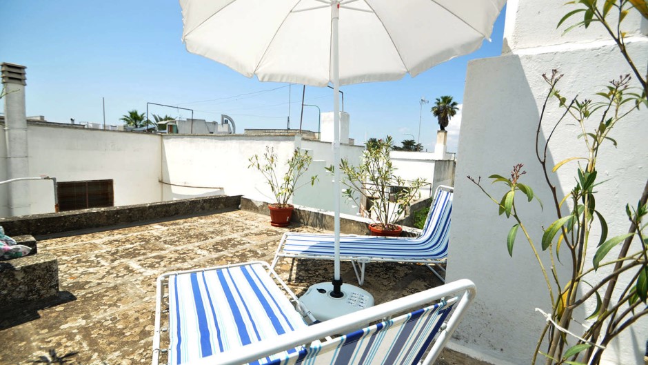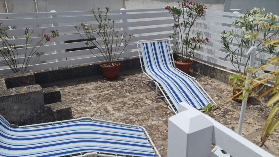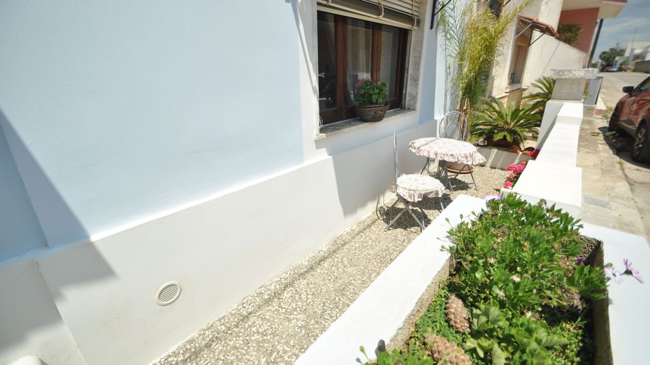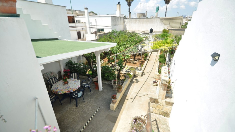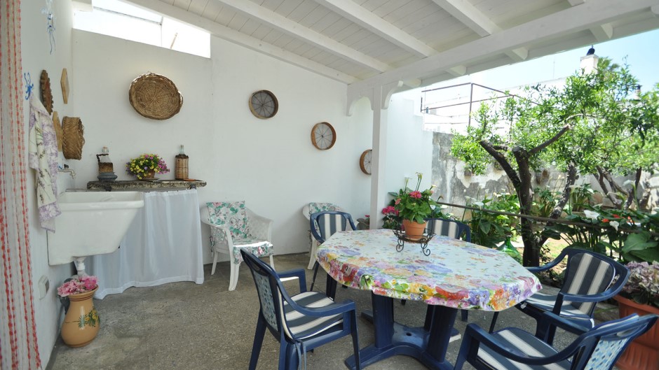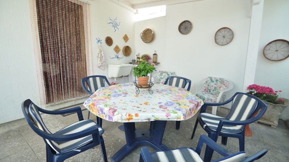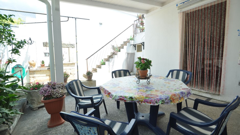 L'appartamento dispone di una veranda posteriore con uno spazio esterno attrezzato con mobili da giardino. Inoltre, c'è un giardino con alberi di arancio, panchine e sdraio per prendere il sole nel solarium presente sul terrazzo. Alla fine del giardino, all'interno del secondo bagno di servizio, è presente lavanderia con lavatrice.