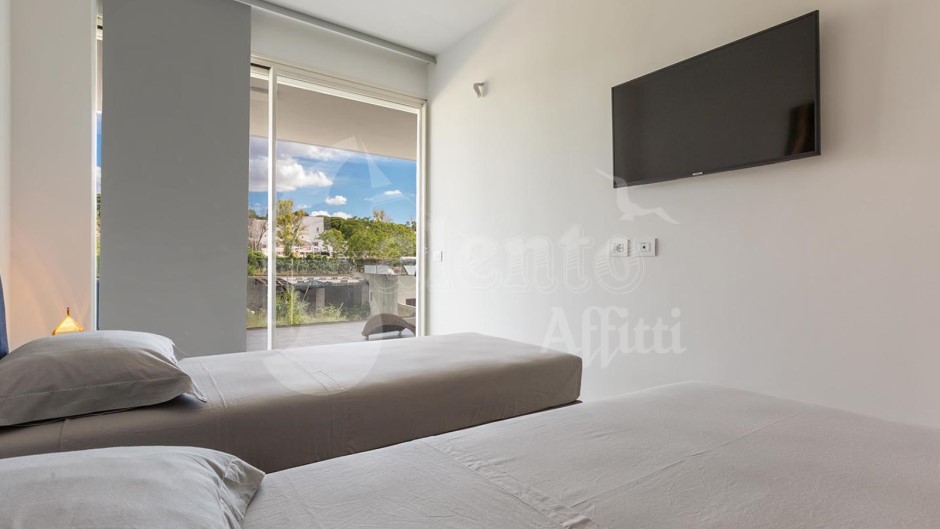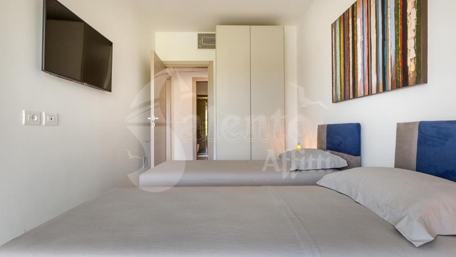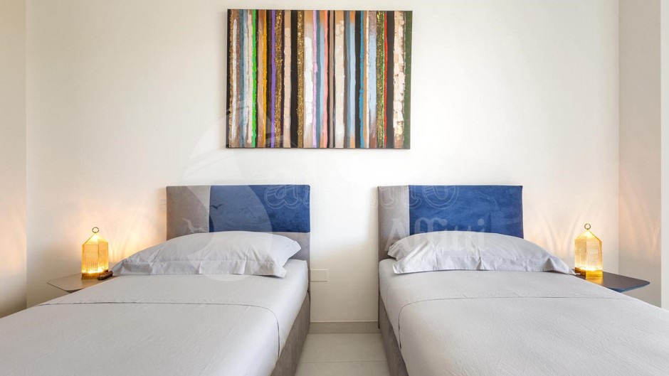 La zona notte è composta da una camera matrimoniale e una camera doppia, entrambe arredate con gusto. Completa la casa vacanze la presenza di due bagni completi di doccia.