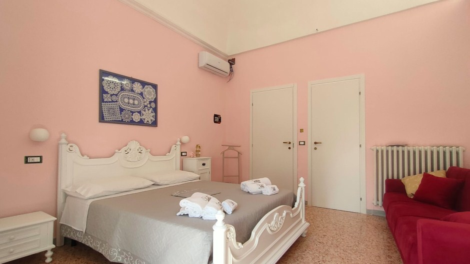 1 camera matrimoniale King (Pizzi e Merletti) con divano letto singolo, angolo cottura con piastre elettriche, tavolo con sedie e tutto il necessario per cucinare. e bagno privato.