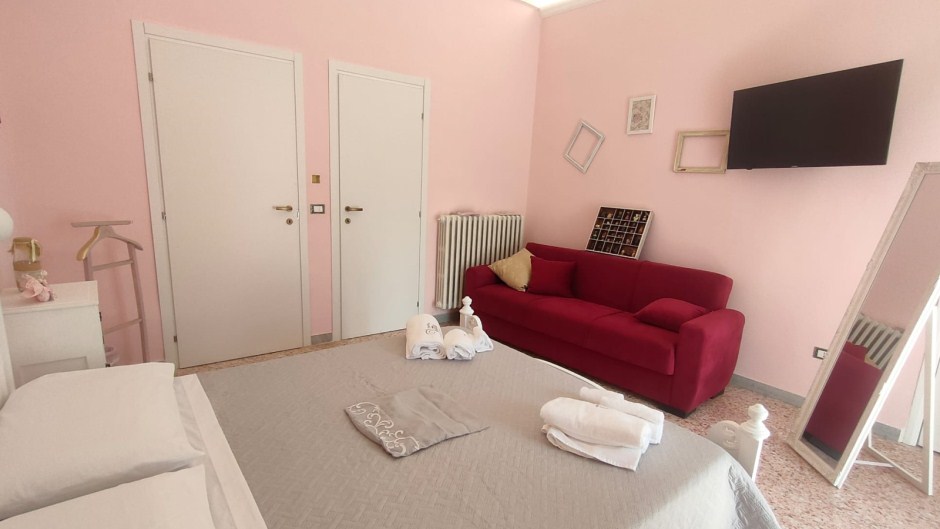 2 suite (Suite Filati e Ricami e Suite Bottoni e Cerniere) di circa 50 mq ciascuna con una camera matrimoniale, soggiorno con divano letto matrimoiale, cucina accessoriata con forno elettrico, tavolo con sedie e tutto il necessario per cucinare. bagno privato;