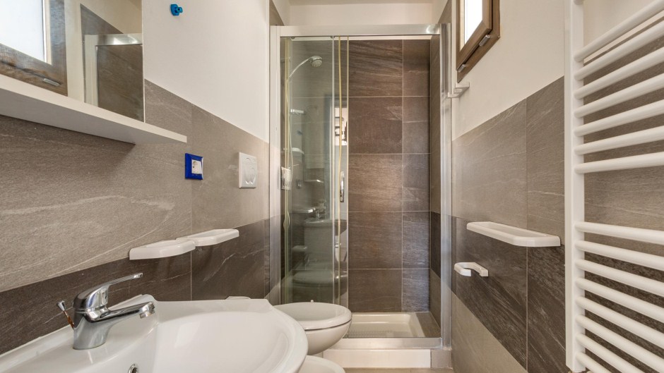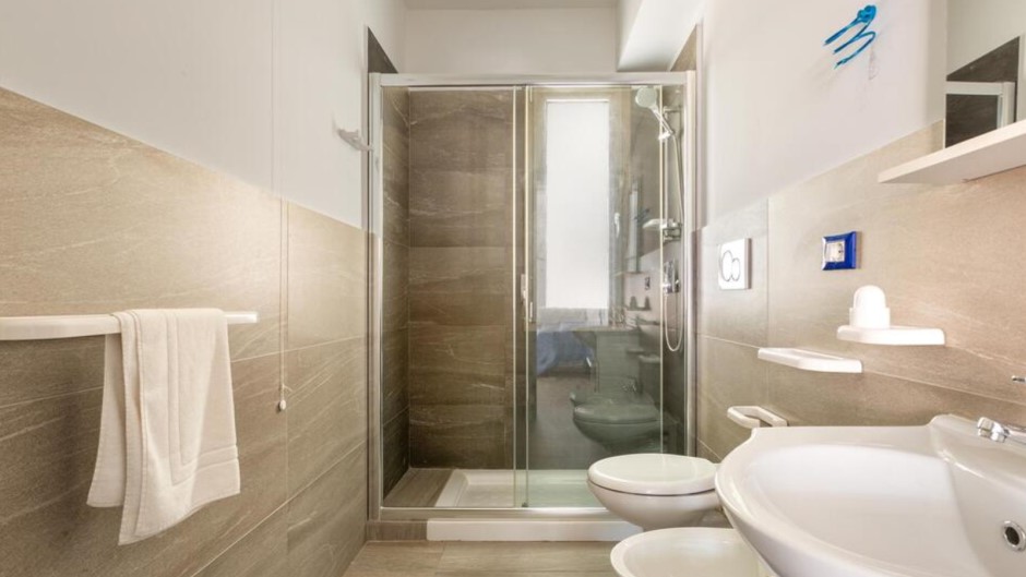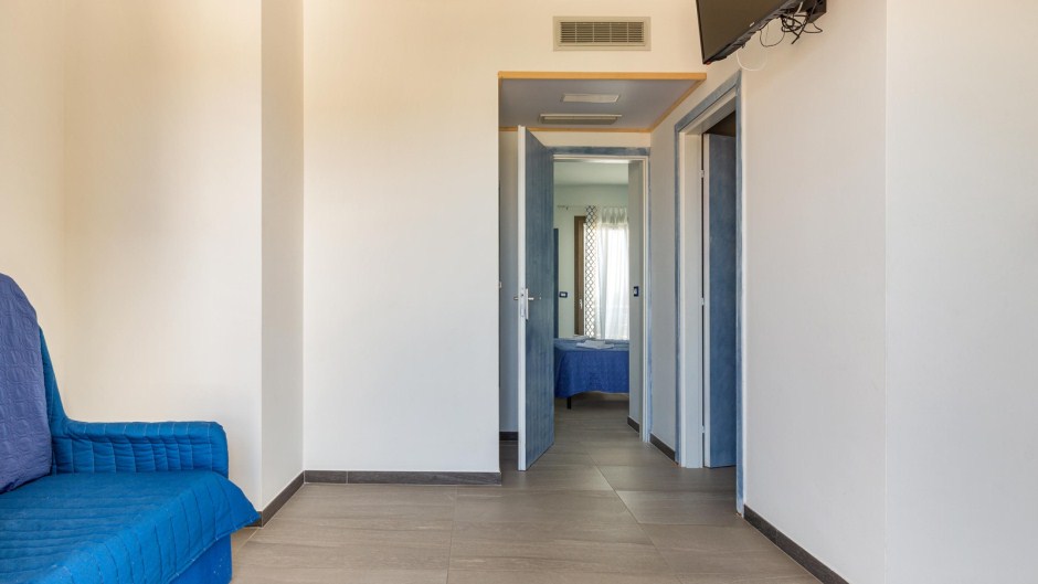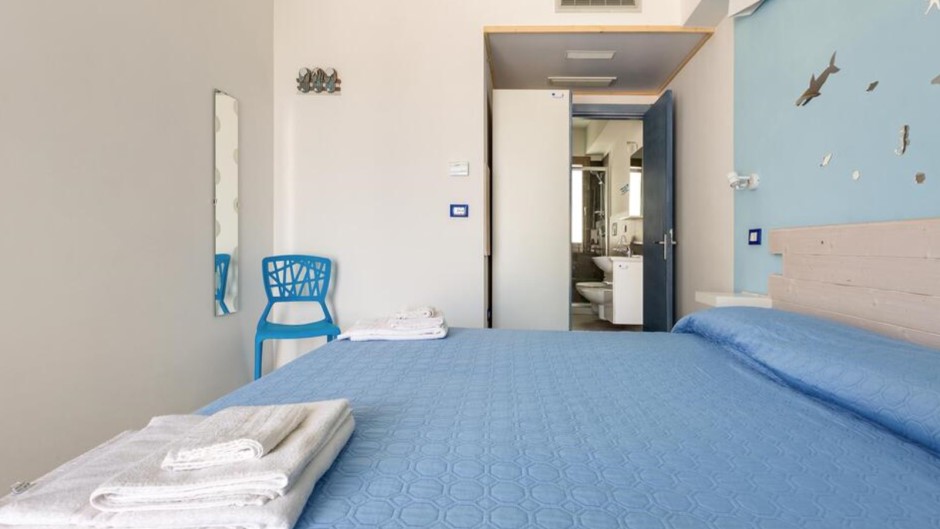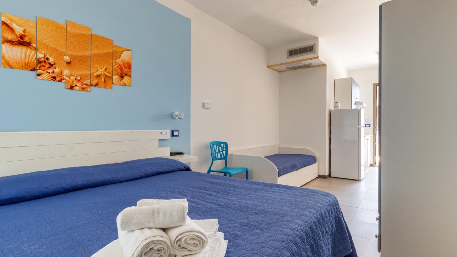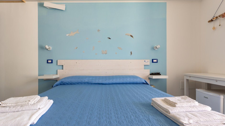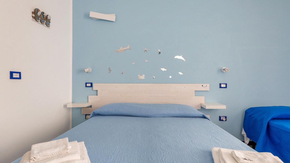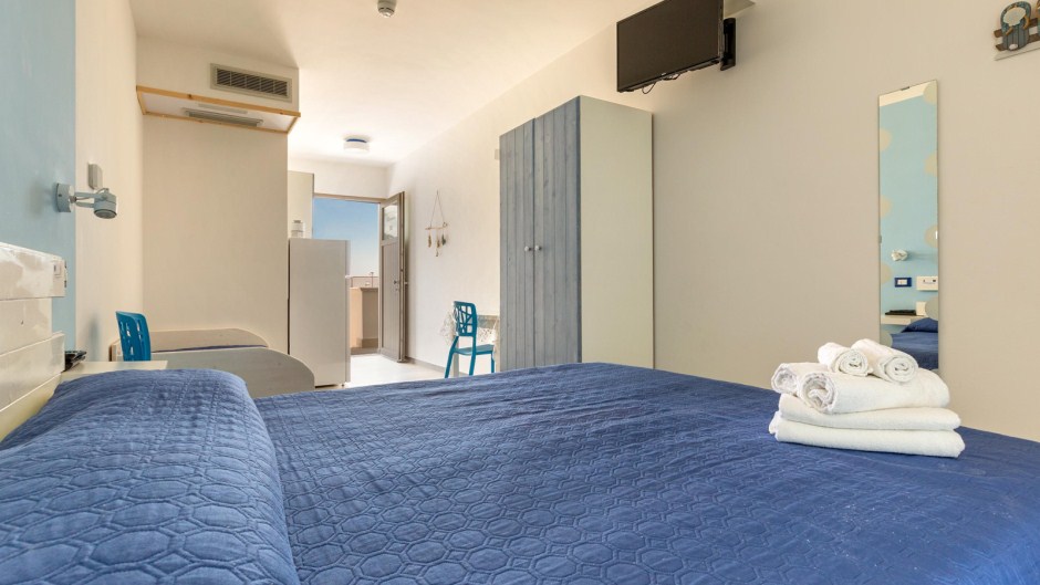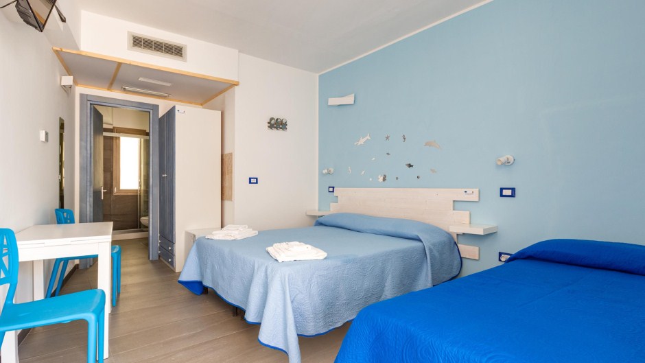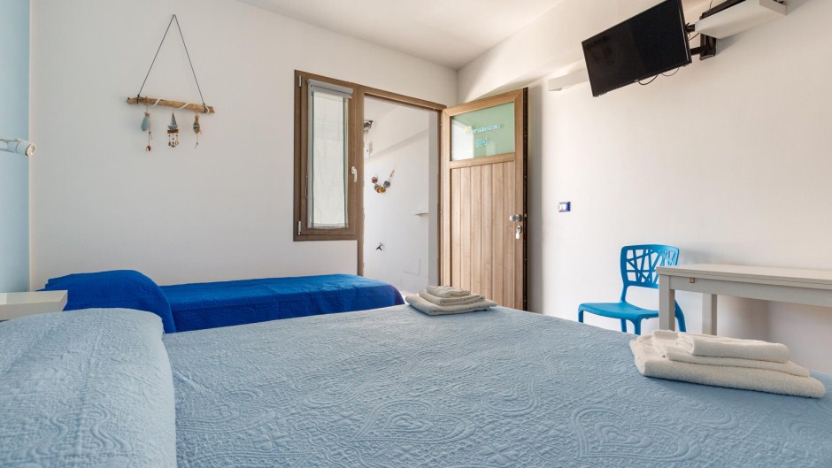 Sistemazione in camera tripla: letto matrimoniale+ singolo, bagno privato con doccia, zanzariera (solo su finestra), colazione inclusa.
