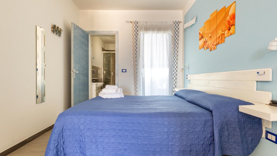Sistemazione in camera matrimoniale: letto matrimoniale, bagno privato con doccia, zanzariera (solo su finestra), colazione inclusa.
