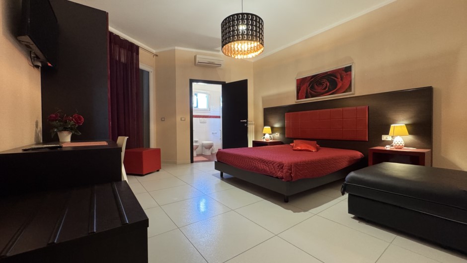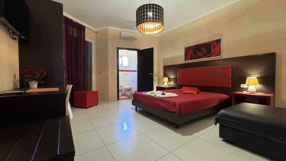 Le cinque camere da letto, arredate con gusto e attenzione al comfort, includono due matrimoniali molto spaziose e tre doppie con letti unibili. Tutte le camere sono dotate di bagno privato interno con box doccia, climatizzazione indipendente, minifrigo, cassaforte e balcone arredato con comodi divanetti, perfetti per godersi la tranquillità del paese.