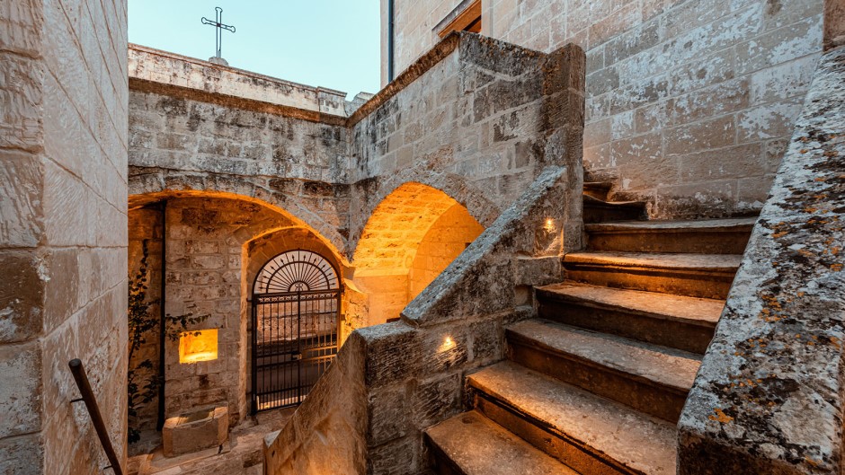 Situata nel centro storico di Maglie, nel cuore del Salento, la struttura sorge adiacente alla chiesa di Sant’Antonio Abate, risalente al 1550. La narrazione vuole che questa struttura fosse un piccolo convento da dove poi si sia formato il primo micro borgo ecclesiastico.