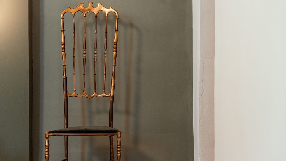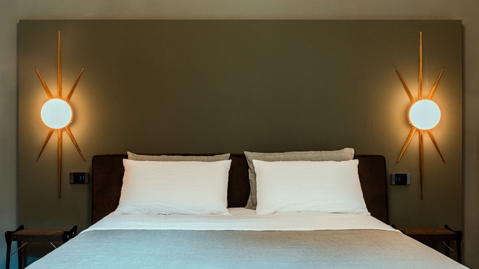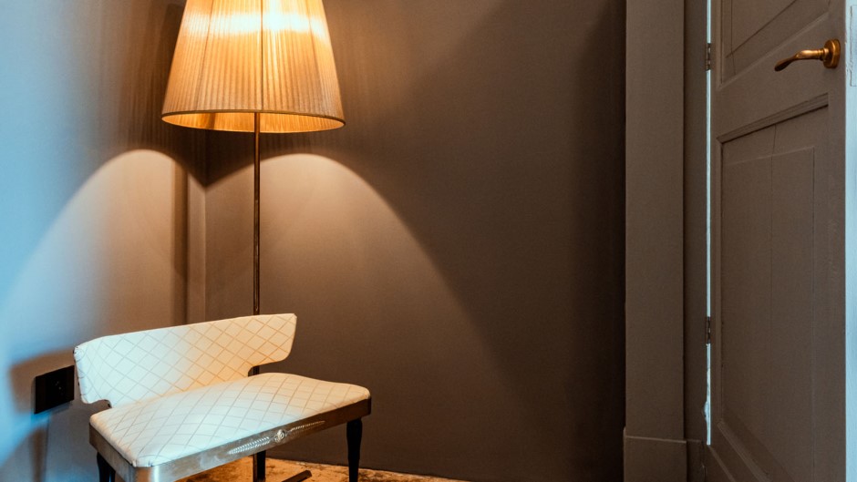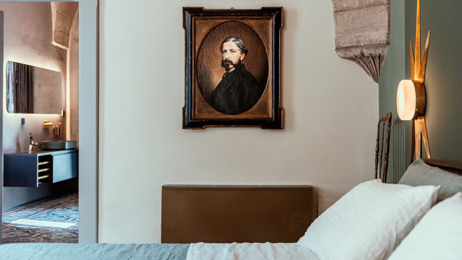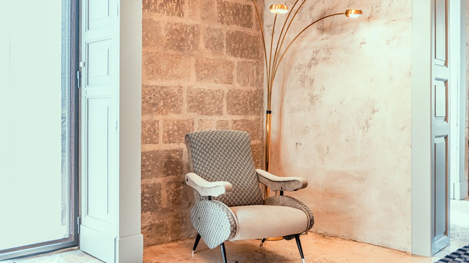 Storia e modernità si uniscono in modo sorprendente nella Suite, con arredi esclusivi di modernariato, lampade degli anni ‘60 di Gio Ponti, poltrone vintage, lampadari Sputnik.