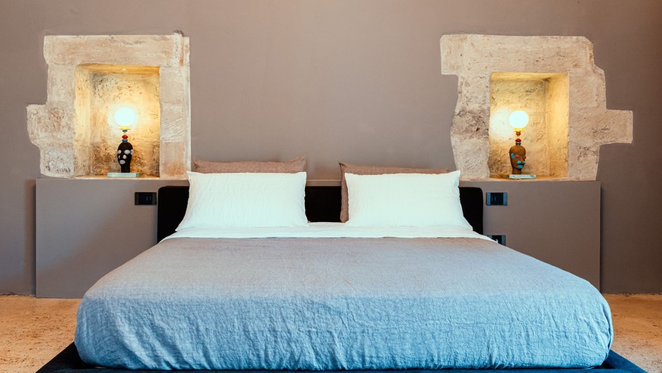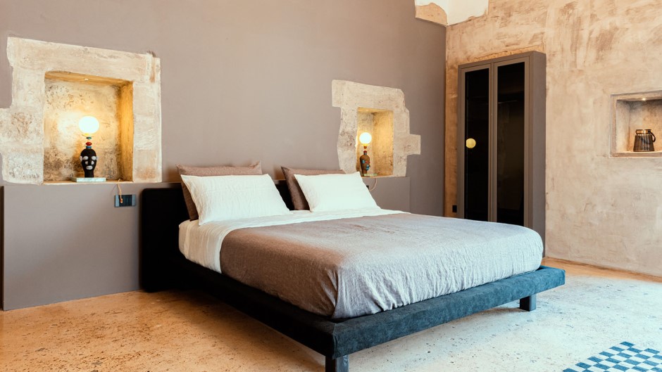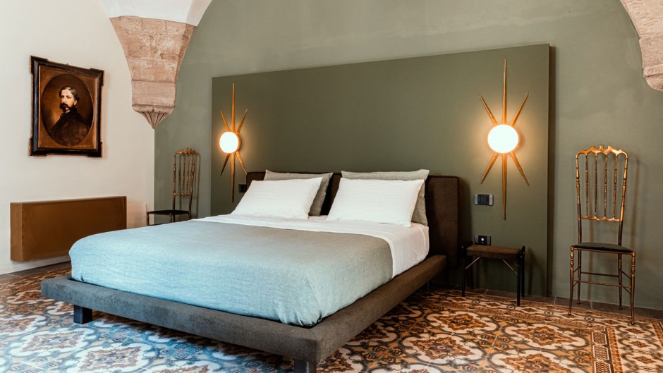 Quattro camere, distribuite tra piano terra e primo piano, soffitti con volte a stella e pavimenti in cocciopesto e cementina originali, tutto per mantenere lo spirito e l’atmosfera suggestiva ed intima dell’edificio storico. Ogni Suite si pregia della propria distintiva particolarità, rendendosi unica, arredata con pezzi di design dell’arte contemporanea, donando alla struttura un contrasto visivo ricercato e confortevole.
