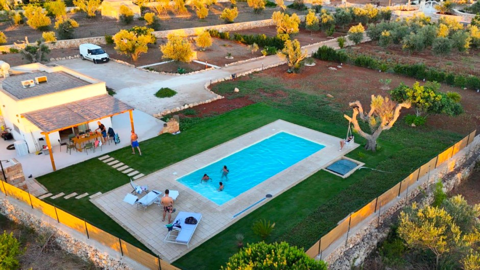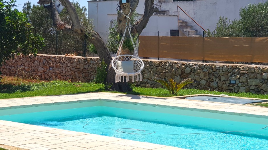 La struttura si apre su un ampio spazio living che comprende una cucina rustica e ben attrezzata, dotata di elettrodomestici moderni come forno elettrico, microonde, piano cottura a gas, frigorifero e lavastoviglie. La cucina si affaccia su un curato giardino grazie a una grande portafinestra, che regala una splendida vista sulla piscina, simbolo di relax e raffinatezza. La veranda, arredata con un accogliente gazebo, rappresenta il luogo perfetto per gustare una colazione all’aria aperta, mentre l’angolo barbecue, completo di piano d’appoggio e lavabo, invita a serate estive in compagnia.
