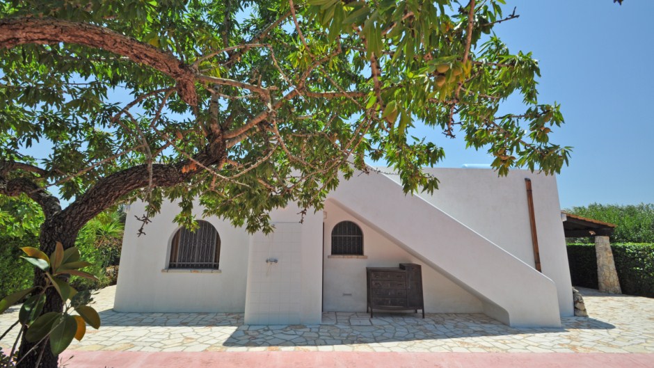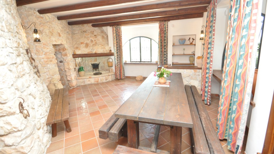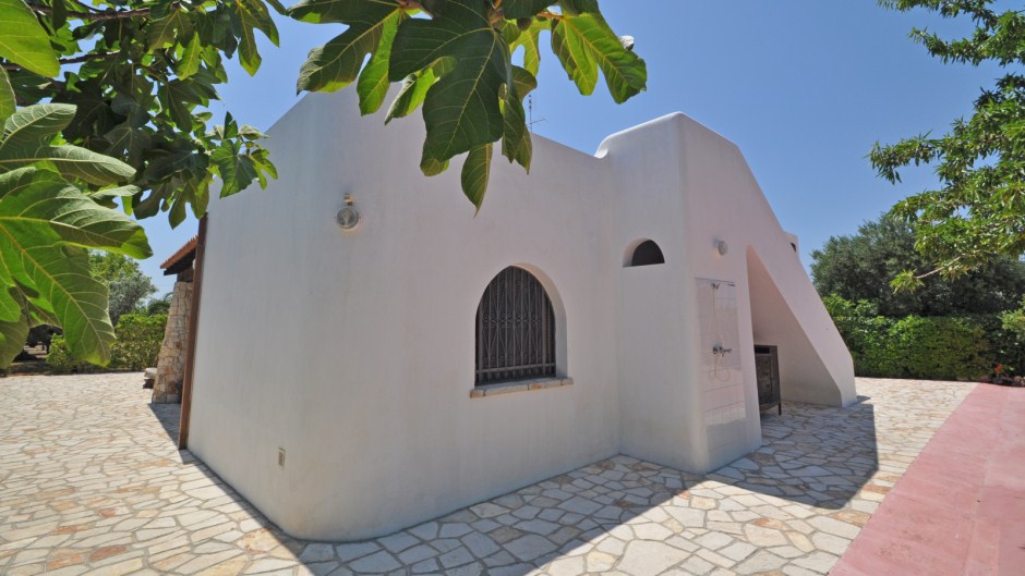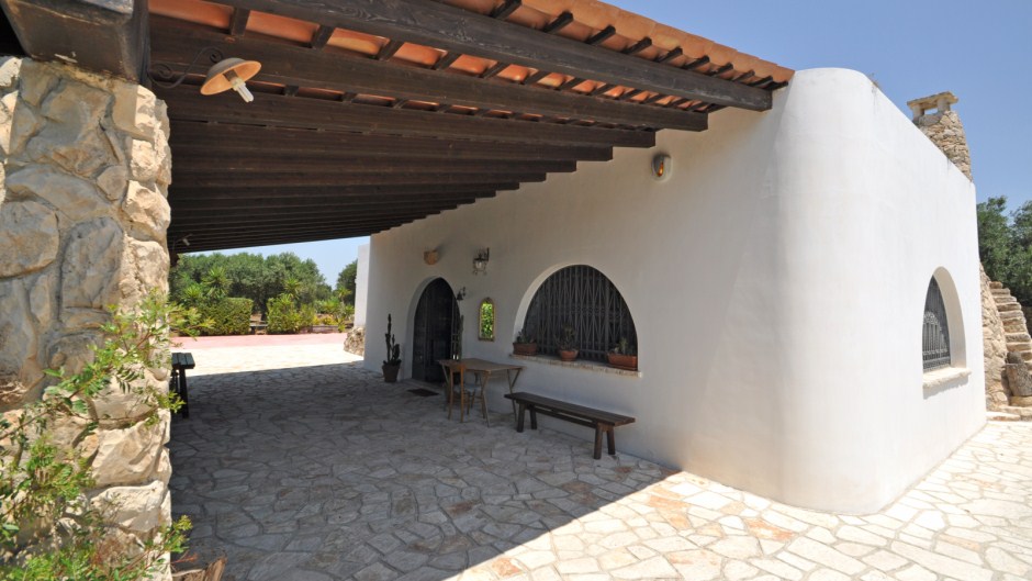 All’esterno si può godere di due ampie verande coperte attrezzate con tavoli che permettono di pranzare e cenare all'aperto, doccia esterna, patio con sedili in muratura, camino esterno in muratura da usare per preparare gustose grigliate, posti auto. Tutto questo a poco più di 1 km dal mare.