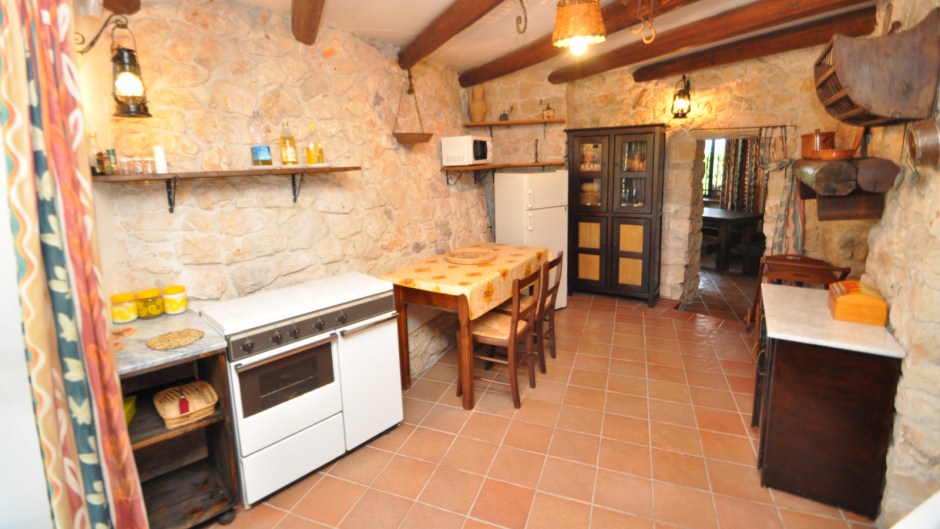 La struttura dispone di due camere matrimoniali e una camera ricavata nel trullo con letto alla francese da una piazza e mezza, una cucina abitabile, bagno con vasca e doccia e antibagno con pila e lavatrice ed un ampio soggiorno con camino e divano letto matrimoniale.