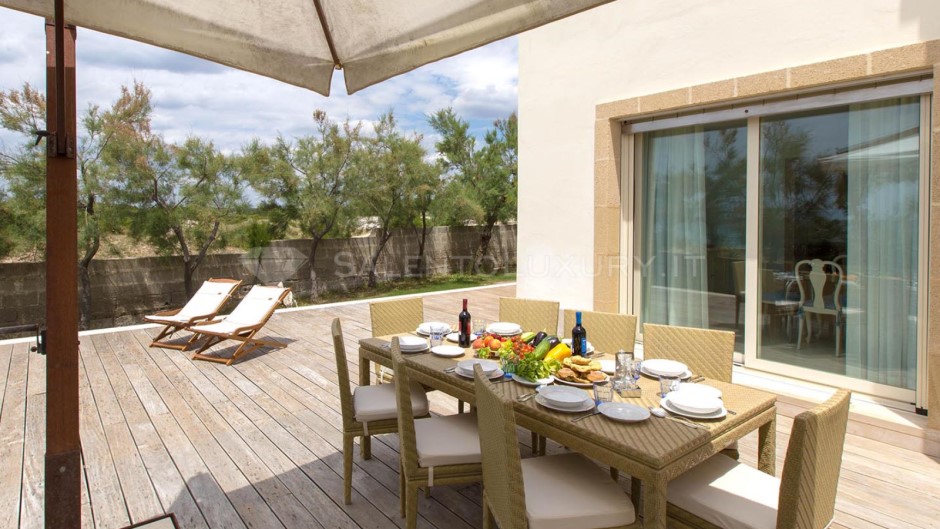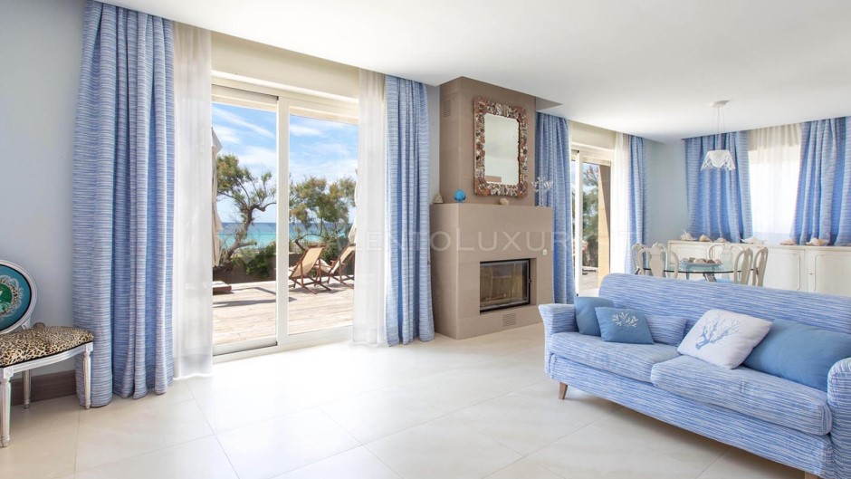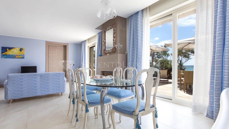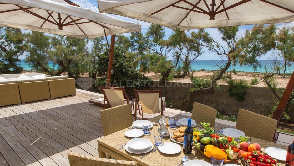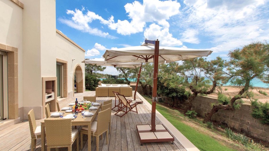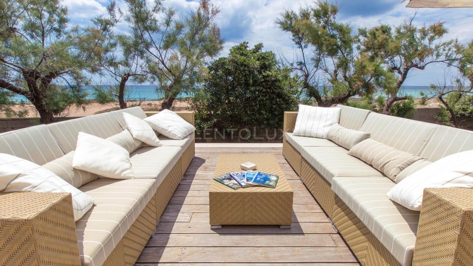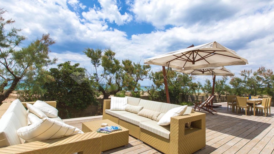 Offre il privilegio raro di svegliarsi davanti al mare, di averlo a pochi passi da casa, di pranzare e cenare con il sottofondo della risacca, su una veranda ben arredata sia con sala da pranzo e barbecue, sia con un comodo solarium che non lascia immaginare nulla: il mare è lì, sempre di fronte.
