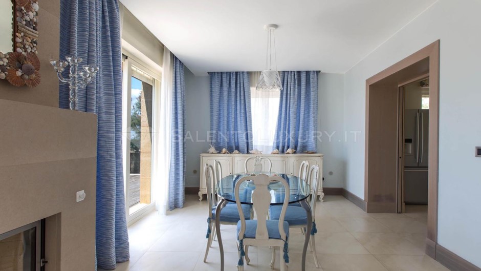 L`aria condizionata rinfresca tutte le stanze. La villa si apre con un ampio living suddiviso in salotto e sala pranzo con camino e tv.