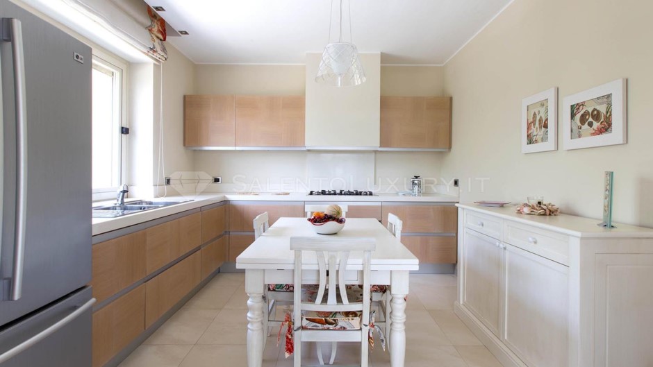 A parte vi è la spaziosa cucina accessoriata con maxi frigo, lavastoviglie, forno elettrico e tutto l`occorrente per cucinare in vacanza con famiglia e amici.