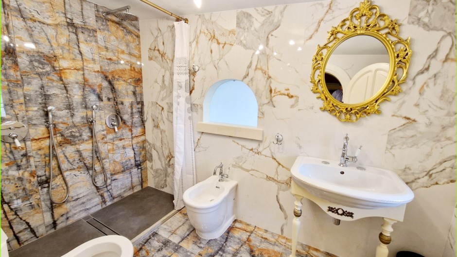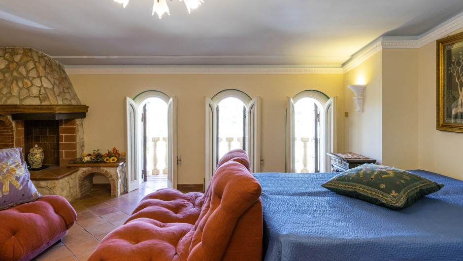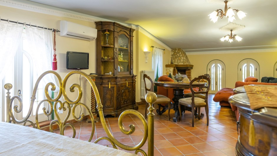 Al primo piano, altre 4 camere da letto matrimoniali, di cui una esclusiva con bagno privato e climatizzatore, offrono spazi di riposo di qualità superiore. Le altre camere condividono due bagni aggiuntivi situati sullo stesso piano, garantendo una comodità ottimale per tutti gli ospiti. L'aria condizionata è disponibile nel corridoio, assicurando un ambiente fresco e piacevole.
