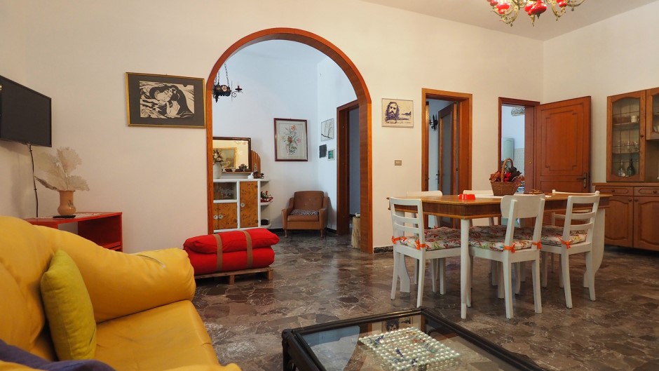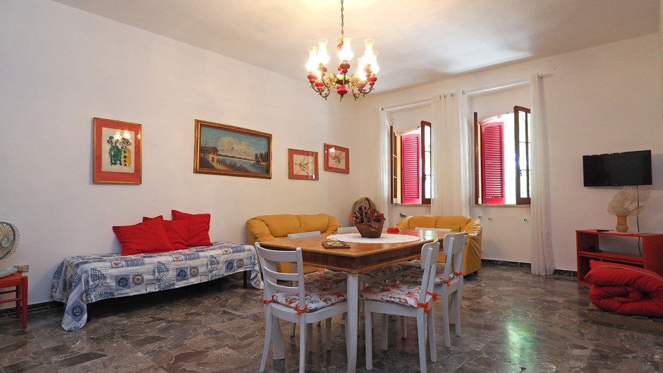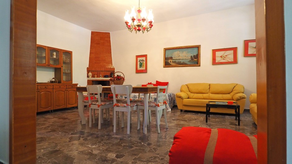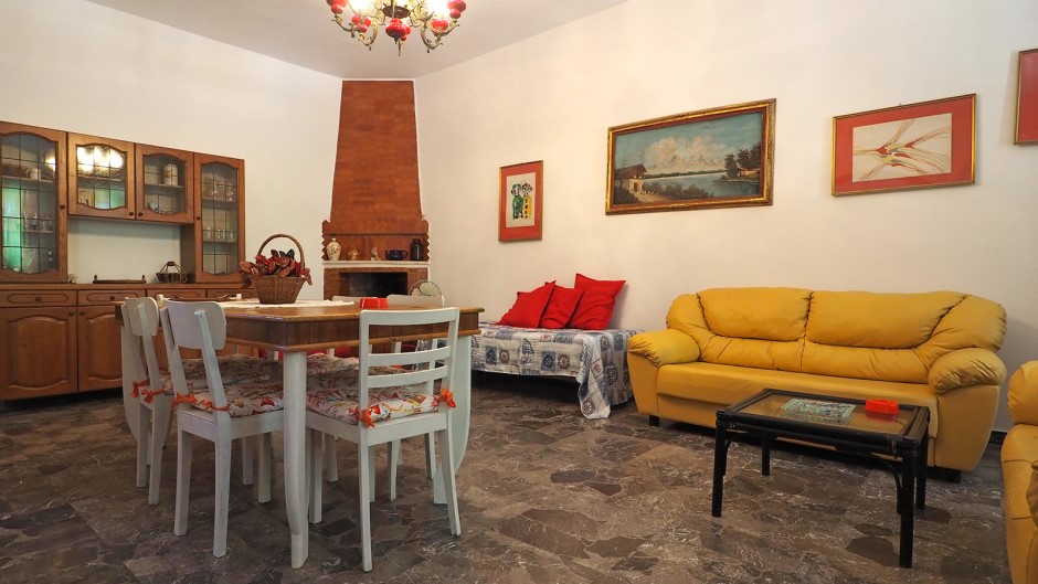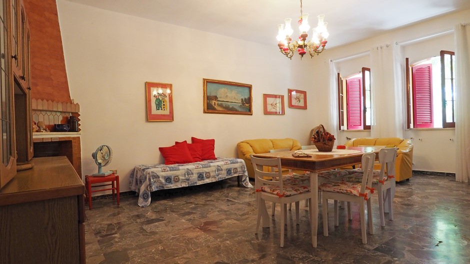 Internamente c’è un ingresso che si apre su un grandissimo soggiorno con tavolo da pranzo, tv, divani e possibilità di inserire fino a tre posti letto; poi la cucina con altro tavolo da pranzo, due camere da letto matrimoniali ed una camera da letto doppia; due bagni di cui uno con doccia ed uno con doccia e vasca da bagno.