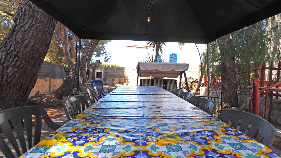Villa Leda nello stile tipico mediterraneo, vi offre la possibilità di vivere la propria vacanza a pochi metri dallo splendido mare della Marina di Mancaversa. Esternamente la villa dispone di ampi spazi che la circondano, spazi attrezzati con mobili da giardino, un gazebo e un tavolo esterno da 10 posti, barbeque a gas, caminetto esterno in pietra, un simpatico dondolo ed una doccia esterna comoda per il rientro dal mare. Il tutto circondato dal verde ed ombreggiato naturalmente da rigogliosi pini marittimi ed altri alberi.