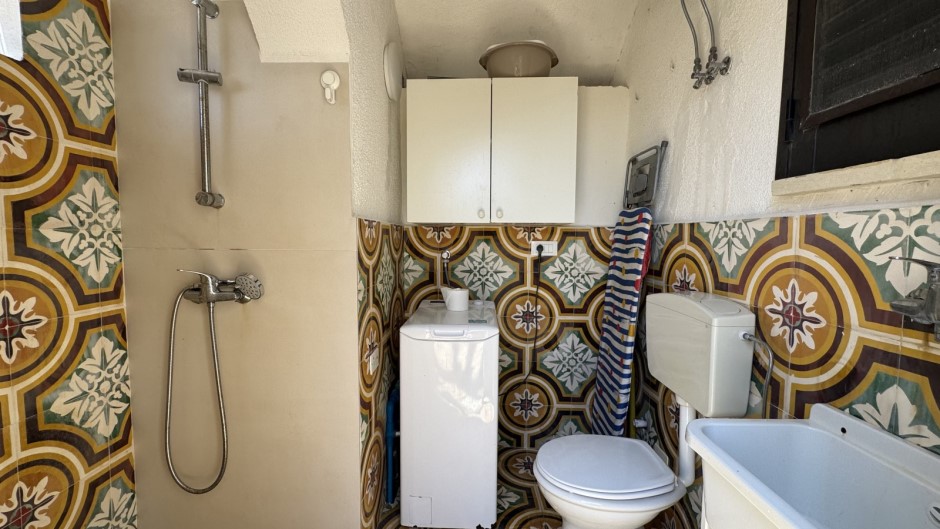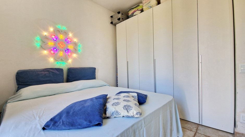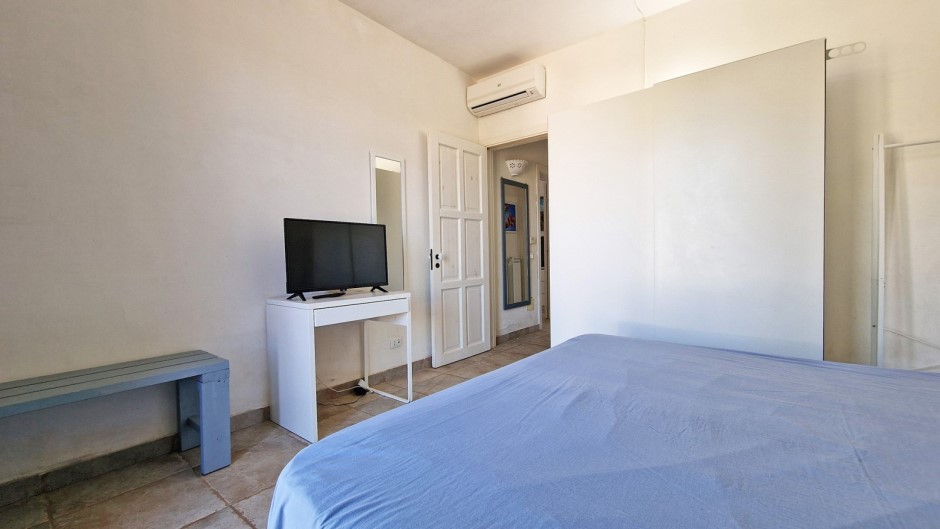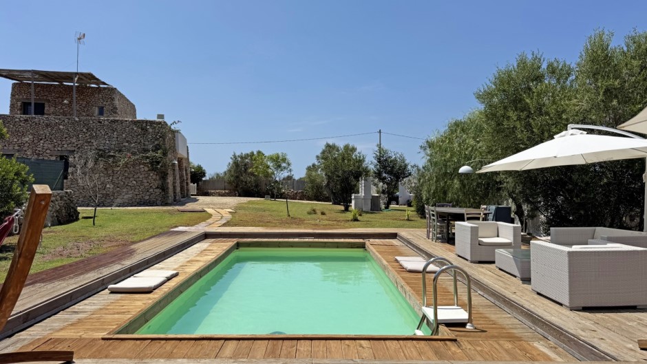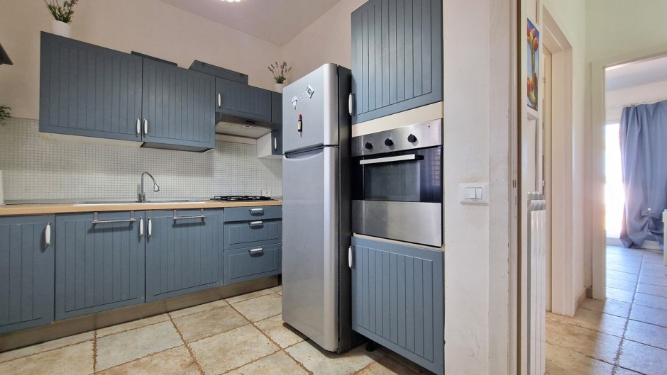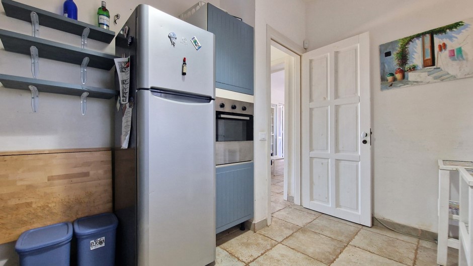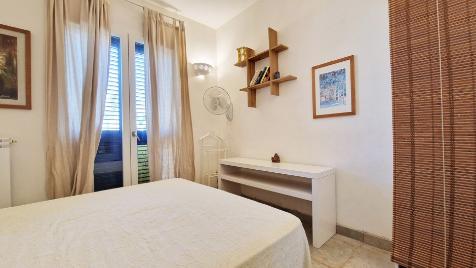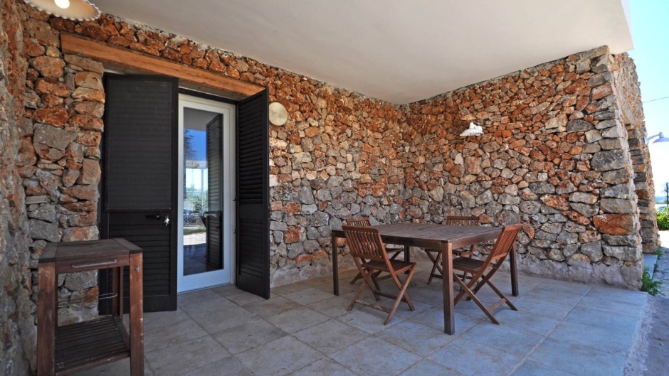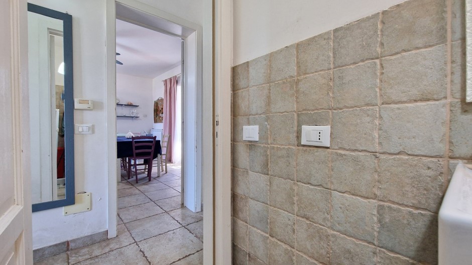 La villa a piano terra, ampia e luminosa, è arredata con gusto e semplicità e gode di una spaziosa zona living con vetrate scorrevoli, tavolo da pranzo, divano e tv a schermo piatto, una cucina abitabile, 3 camere da letto, di cui 2 matrimoniali e 1 con letto matrimoniale e letto singolo, e due bagni con doccia. Esternamente, la casa gode di una veranda in muratura e di un patio attrezzati con mobili da giardino per pranzi e cene all'aperto. Inoltre sono presenti zanzariere su tutte le porte e finestre.