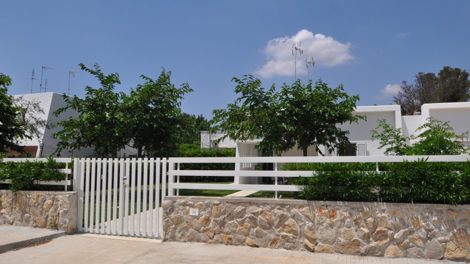 Il cuore di questa villetta è un ampio giardino, finemente attrezzato con mobili da giardino che invitano a momenti di relax sotto il sole salentino. Un tavolo ben posizionato offre la cornice perfetta per pranzi e cene all'aperto, permettendo agli ospiti di godere appieno della dolce brezza marina.