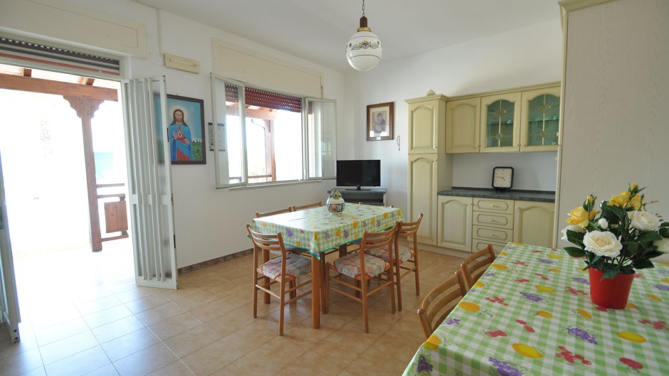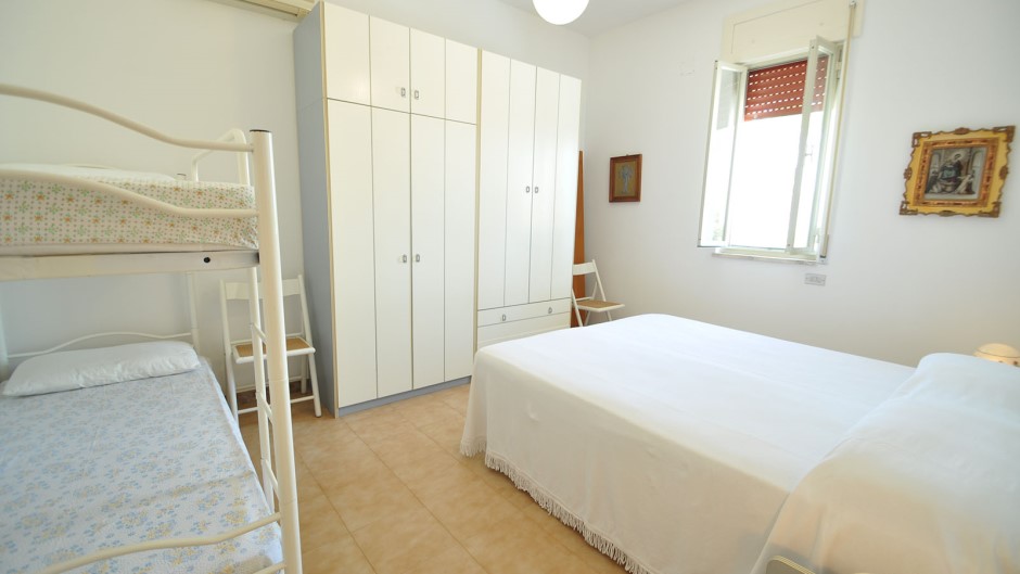 Villetta situata in una zona tranquilla della Marina di Torre Suda. Dispone di tre camere da letto, due matrimoniali e una camera doppia, un ampio soggiorno/pranzo con angolo cottura, bagno completo con doccia, veranda anteriore e posteriore attrezzata con mobili da giardino per pranzare/cenare all'aperto. Dispone di aria condizionata posizionata nel corridoio e uno nella camera matrimoniale con letto a castello. Può ospitare fino ad un massimo di 6 posti letto. Completano la villetta un grande parcheggio auto, lavatrice in comune, due docce esterne e barbecue, wifi. Dista dal mare solo 300 mt.