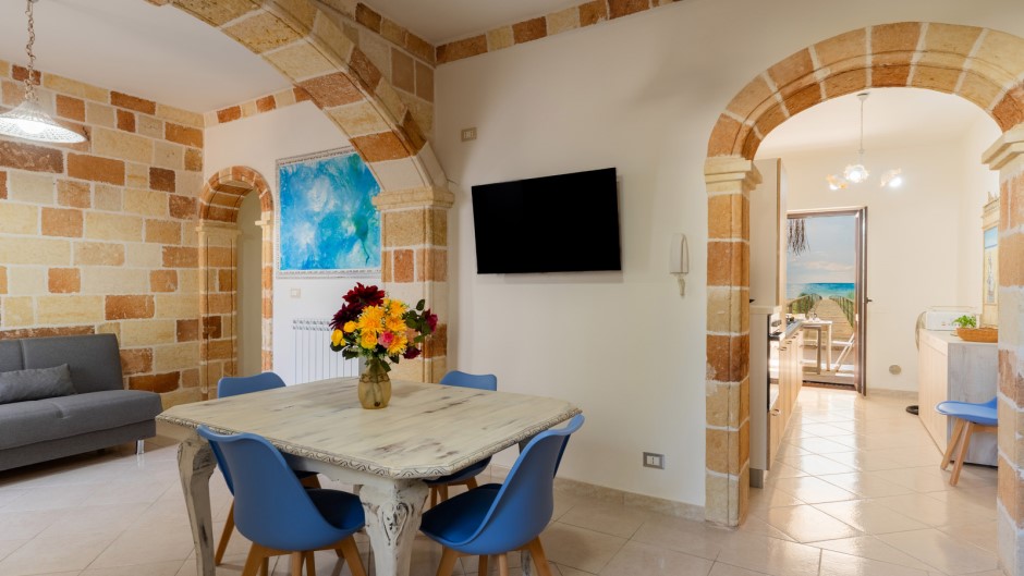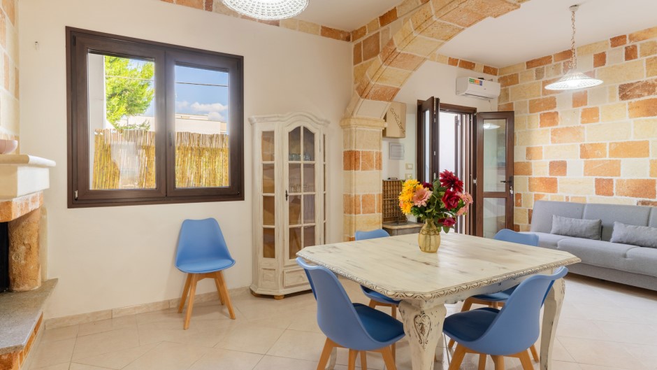 Questo incantevole rifugio è una casa vacanze completa di ogni comfort, con aria condizionata, lavatrice, lavastoviglie e tutto ciò che occorre per garantire un soggiorno piacevole e senza stress. Un cortile ben curato accoglie gli ospiti al loro arrivo, mentre un grazioso soggiorno, arredato con gusto, offre un luogo accogliente dove rilassarsi dopo una giornata trascorsa al sole.